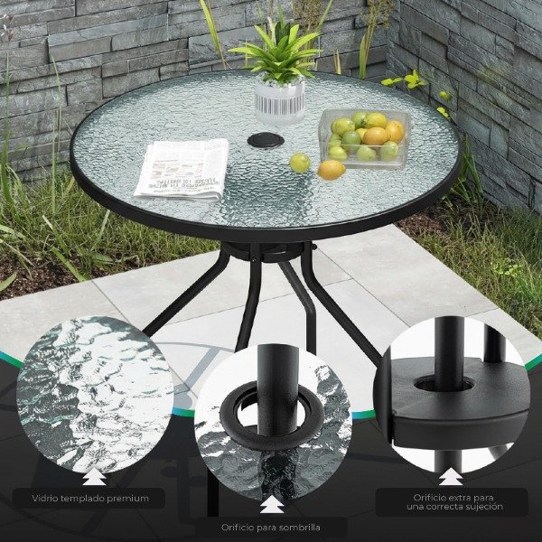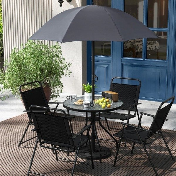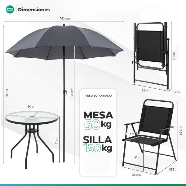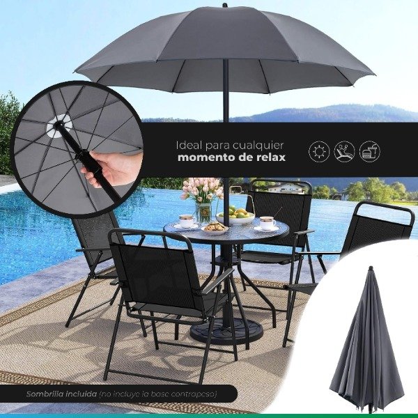 Set de Jardin – 4 Sillas + Mesa + Sombrilla